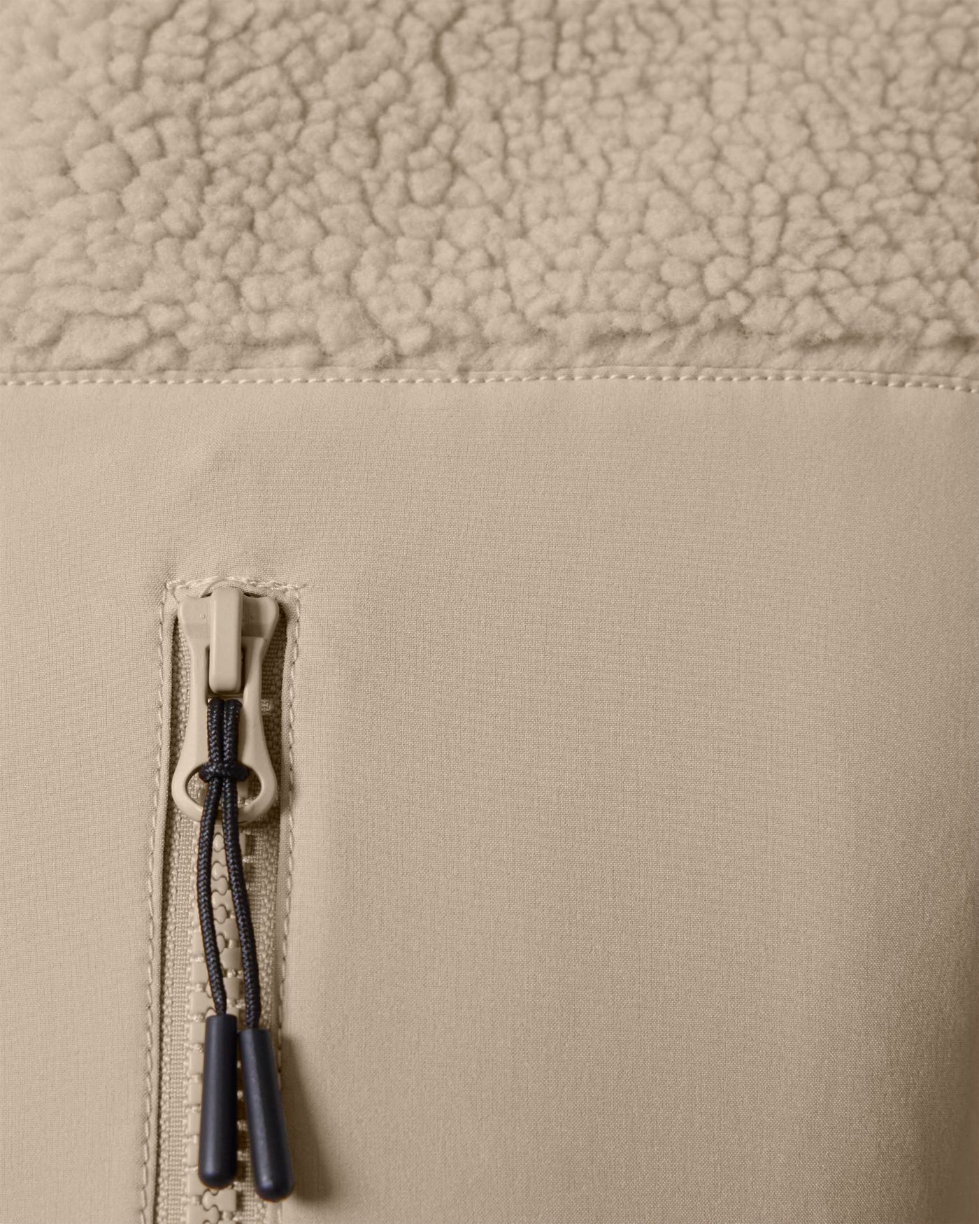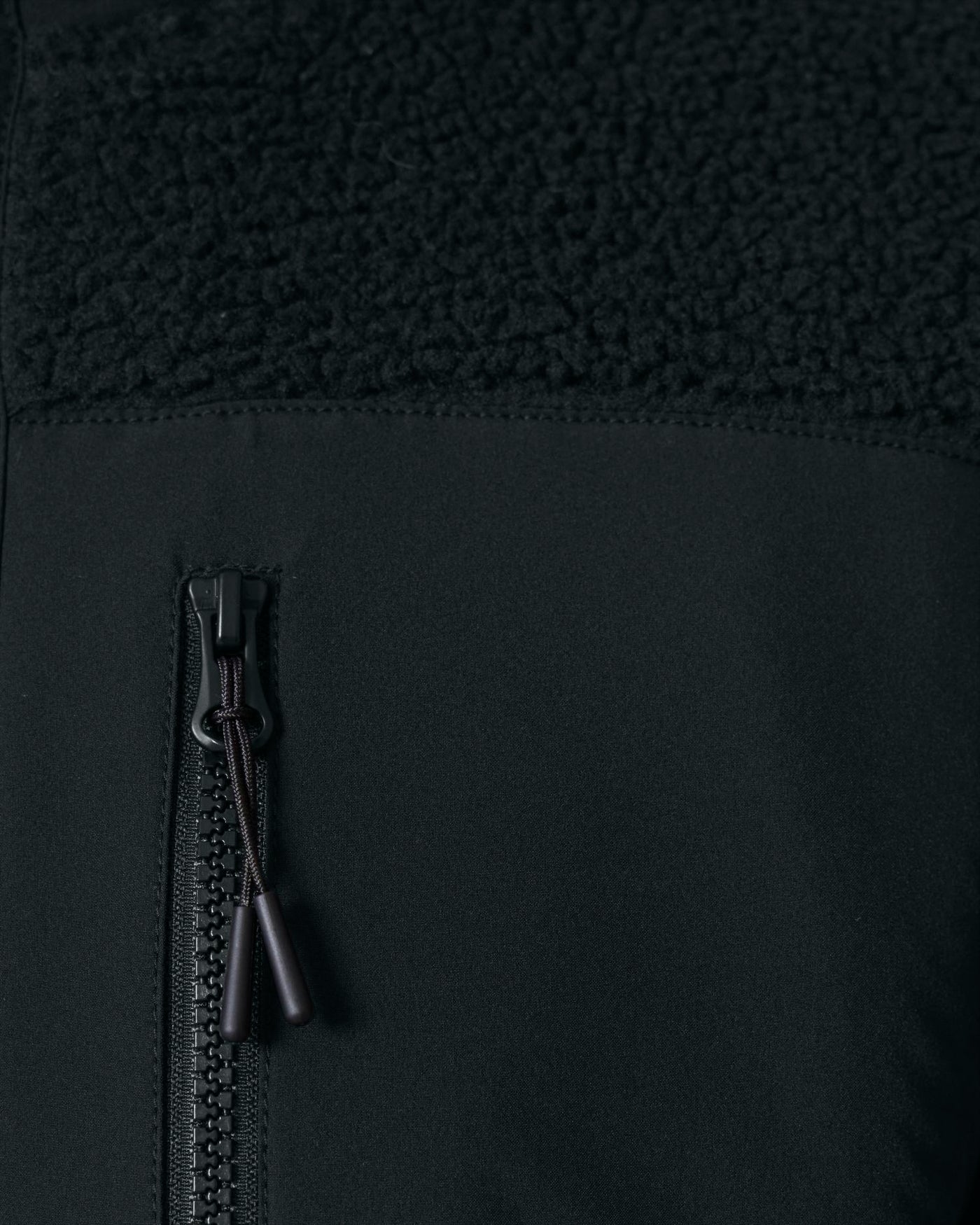 Distinctive Details: Features a sleek Vislon zipper with metal puller, hidden zip pockets, and contrast softshell fabric accents for added texture.